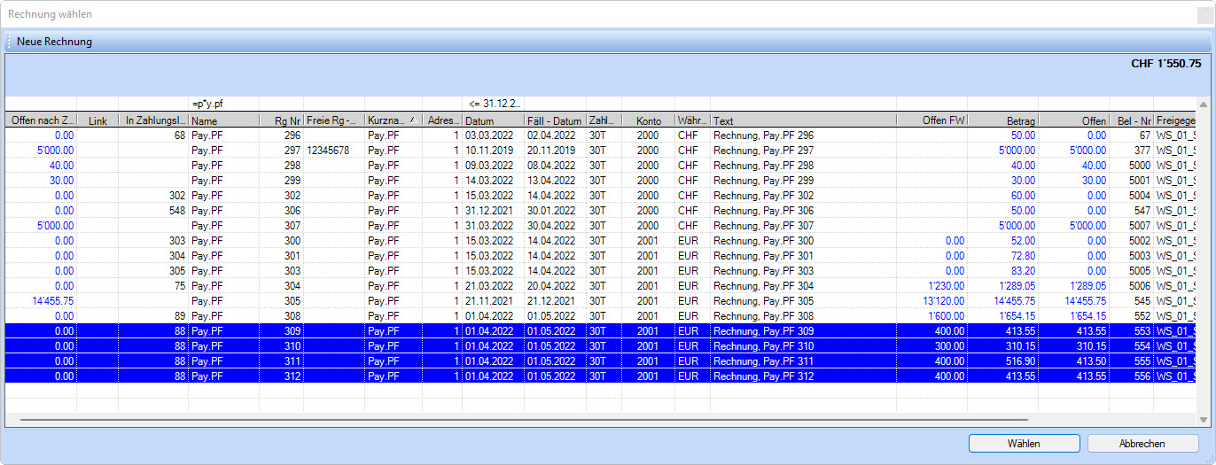 Vorauszahlungen berücksichtigt bei Zuweisung von Einzelrechnungen