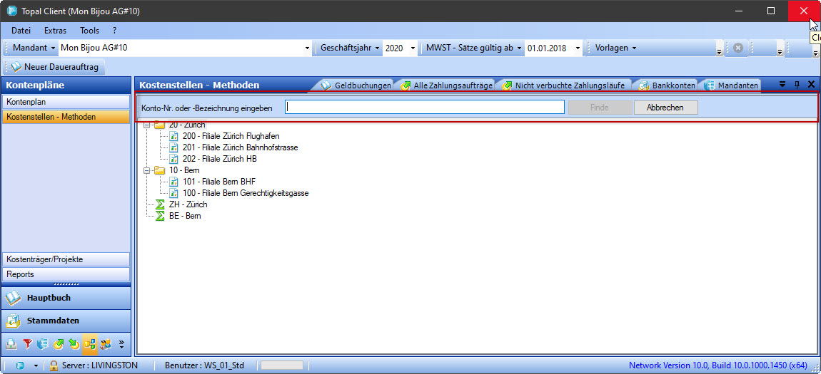 Suchfunktion Kostenstellen Es wurde eine Suchfunktion für die Suche von Kostenstellen eingefügt. Diese können Sie durch "Ctrl + F" aufgerufen werden. Abbildung 1: Suchfunktion Kostenstellen