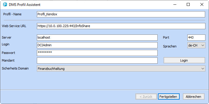 Falls bereits ein DMS Profil existiert, ist dieses durch die folgenden Angaben anzupassen (siehe Abbildung):