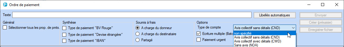 Libellés automatiques pour les propositions de paiement, les paiements manuels et les paiements BVR